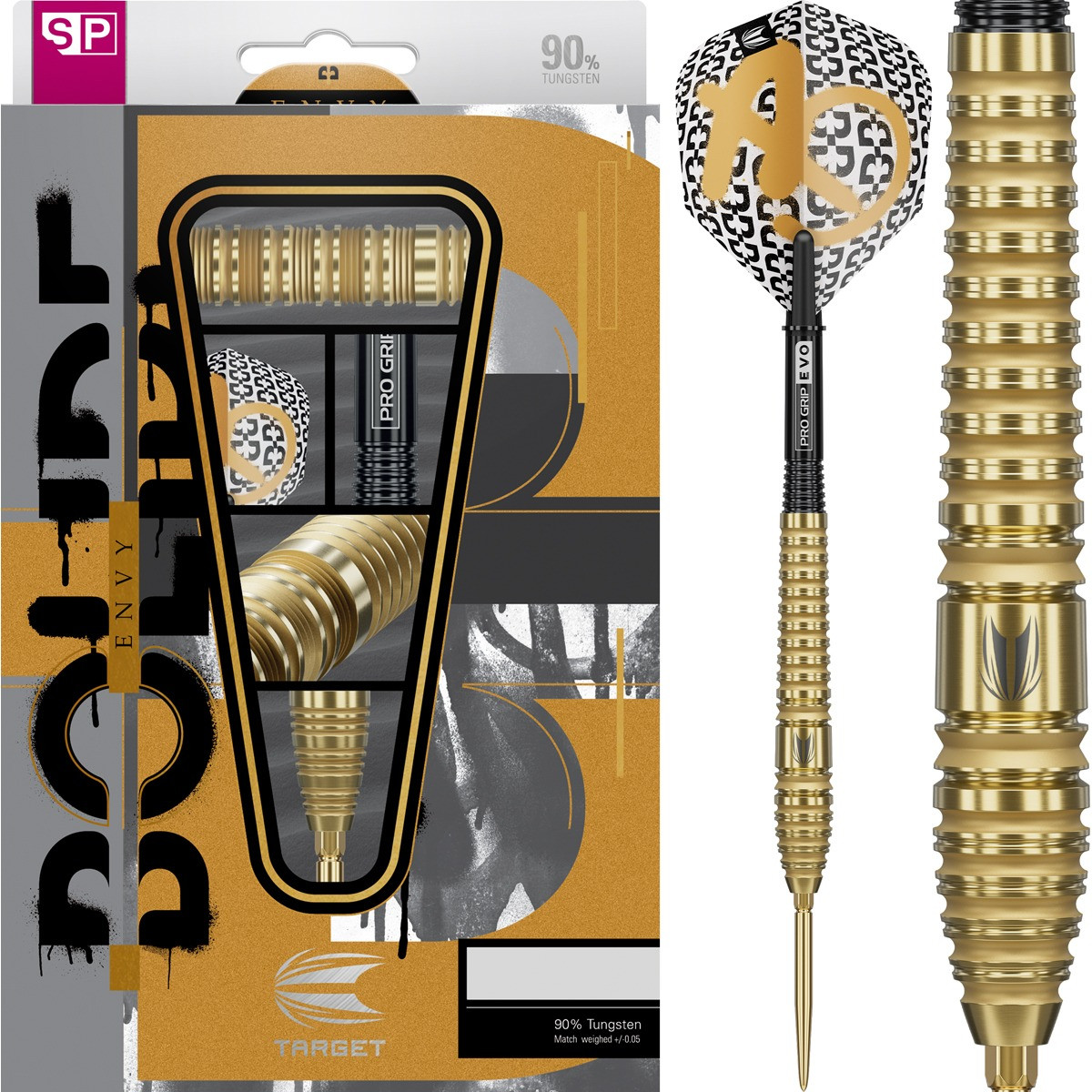 Die Bolide Envy 03 sind Darts für Spieler, die ein klares Setup wollen: auffälliges Design, spürbarer Grip und konstante Kontrolle. Das Barrel kombiniert verschiedene Gripzonen mit klassischem Ringgrip und sorgt so für ein sicheres Gefühl in jeder Wurfphase.