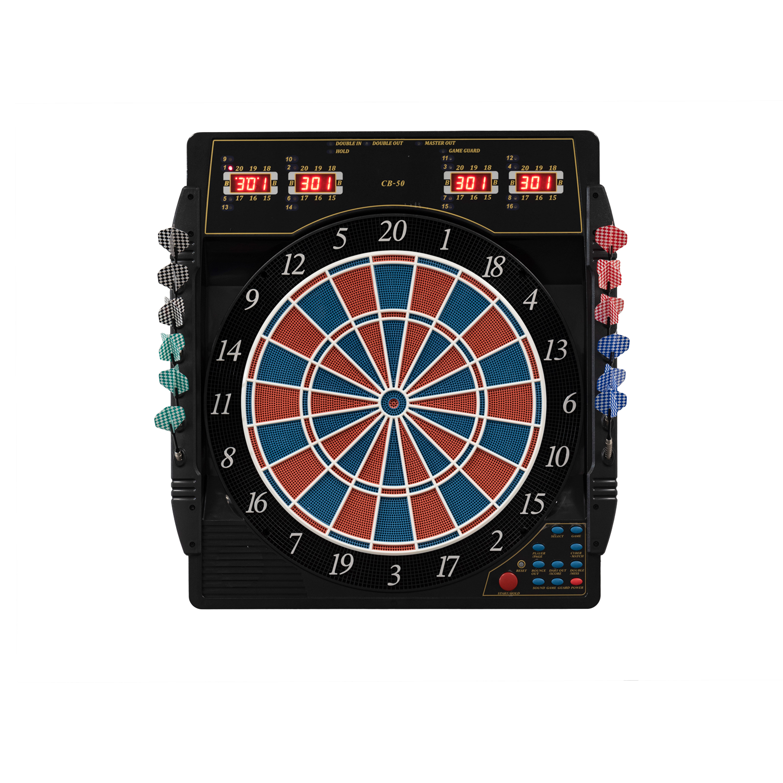 Mit dem elektrischen Dartautomat "CB 50" aus dem Hause Karella werden insgesamt 27 Spiele mit 159 Spielvarianten geliefert.