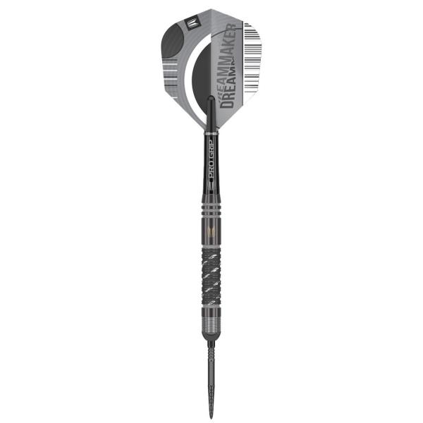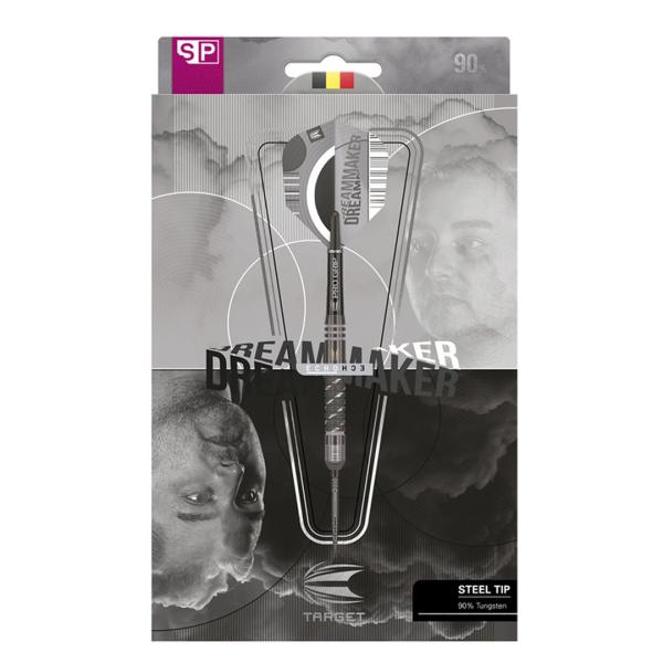 Die Dimitri van den Bergh Edition ist aus einer Kombination des Target Echo Dart in Kombination mit dem Stil von Dimitri Van den Bergh entstanden. Das hochwertig gefräste 90 Prozent-Tungsten Barrel wurde mit nachtschwarzer Beschichtung und sandgestrahlten Querrillen versehen.