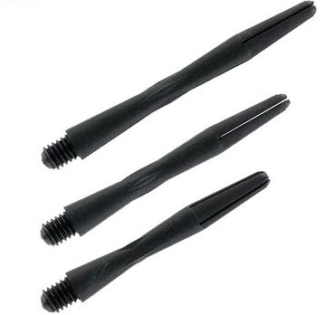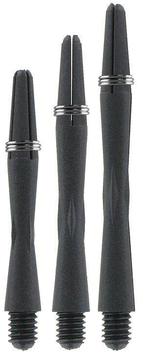Sehr robuste Shafts aus CFK (Carbonfaserverstärkter Kunststoff) inkl. Shaftringe.(CFK) in schwarz mit bekanntem 2BA-Gewinde. Die Shafts sind so konzipiert, dass sie robust, langlebig und sehr leicht sind. Das aerodynamisch verjüngtes Taillendesign verringert Luftverwirbelungen und sorgt für eine gleichmäßige Flugbahn des Darts.
