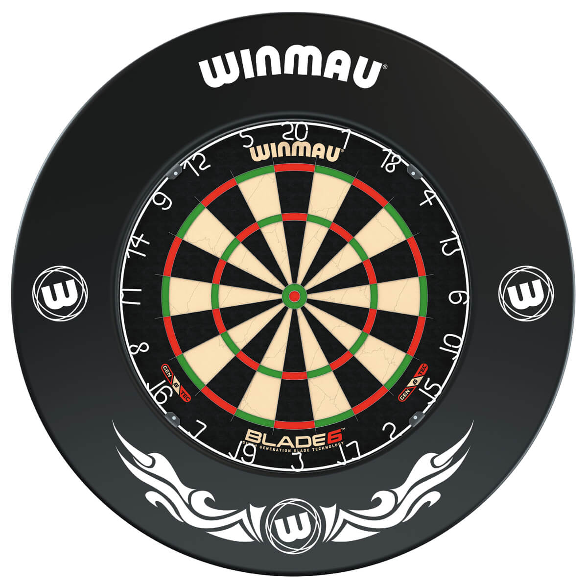 Das auffällige und recht ungewöhnlich bedruckte Surround reduziert das Herunterfallen von fehlgeleiteten Darts, fängt diese auf und mindert optimal die Geräusche! Extra starker, einteiliger "PU"-Surround Ring mit weißen Xtreme Logos aus dem Hause Winmau für Steeldartscheiben. Der Ring bietet einen zusätzlichen Wandschutz von circa 12 cm rund um das Board.