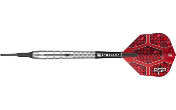 Das Set kommt mit schwarzem Pro Grip Schaft und auffälligen „The Asp“ Flights.